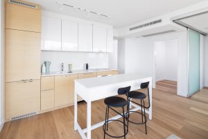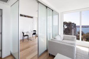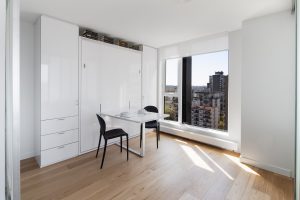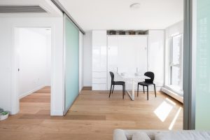 The colour palette is kept minimal using the contrast of white materials against darker window frames and panels. White oak wood flooring takes you from one space to another, creating an effortless, open flexibility. Efficient plans and generous windows amplify the feeling of spaciousness, while modern design and details elevate these homes to an enviable level.