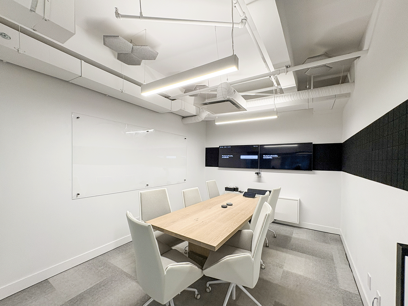 The suite benefits from direct elevator exposure into a dedicated reception area with a prominent branding wall, creating an impressive arrival experience for a flagship office. The existing layout includes nine private offices, two boardrooms, two call rooms, and generous collaborative space, ideal for professional firms, tech companies, or corporate headquarters seeking turnkey space with identity and presence.