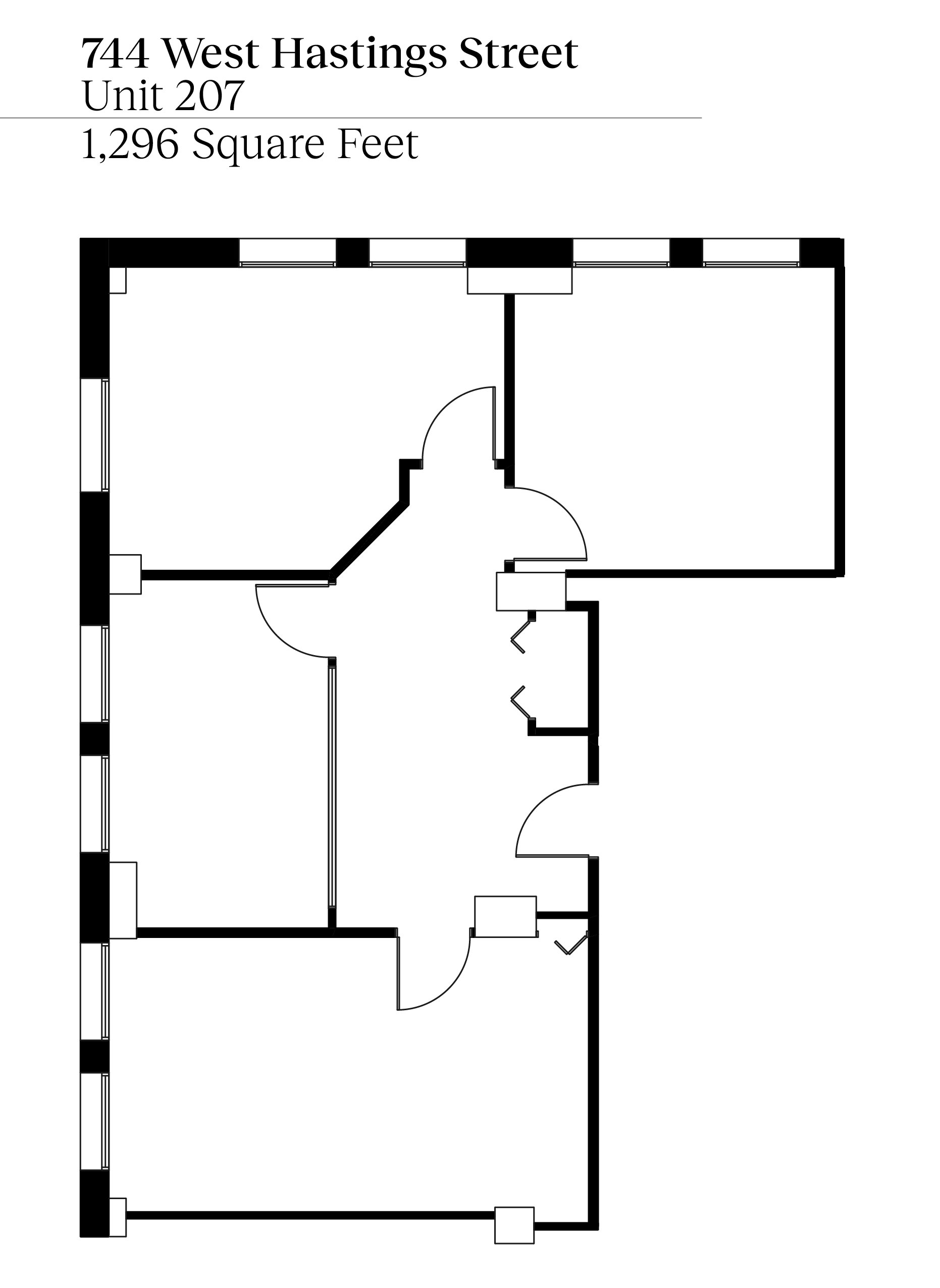Suite 207 – 744 West Hastings Street presents a well-appointed, fully built-out 1,296 SF corner office ideally suited for professional users seeking an efficient and polished workspace in Downtown Vancouver’s Financial District.
