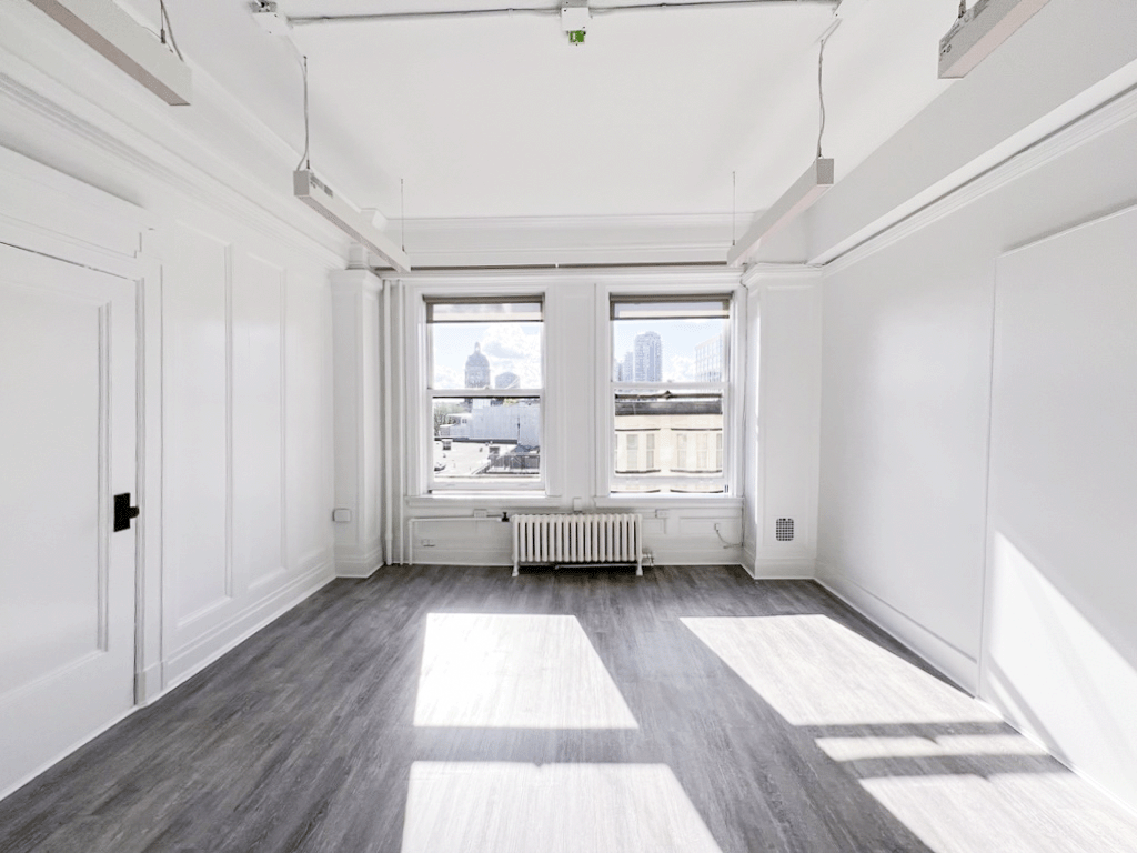 The suite includes hardwood flooring, LED lighting, and operable windows with roller blinds, allowing for excellent natural light and fresh air throughout the day. Tenants also enjoy 24/7 secured access, monitored CCTV, bike storage in the original heritage vault, and quick elevator access.