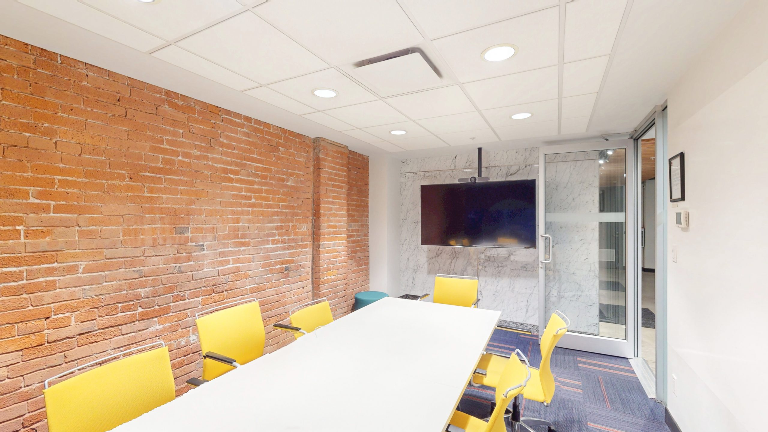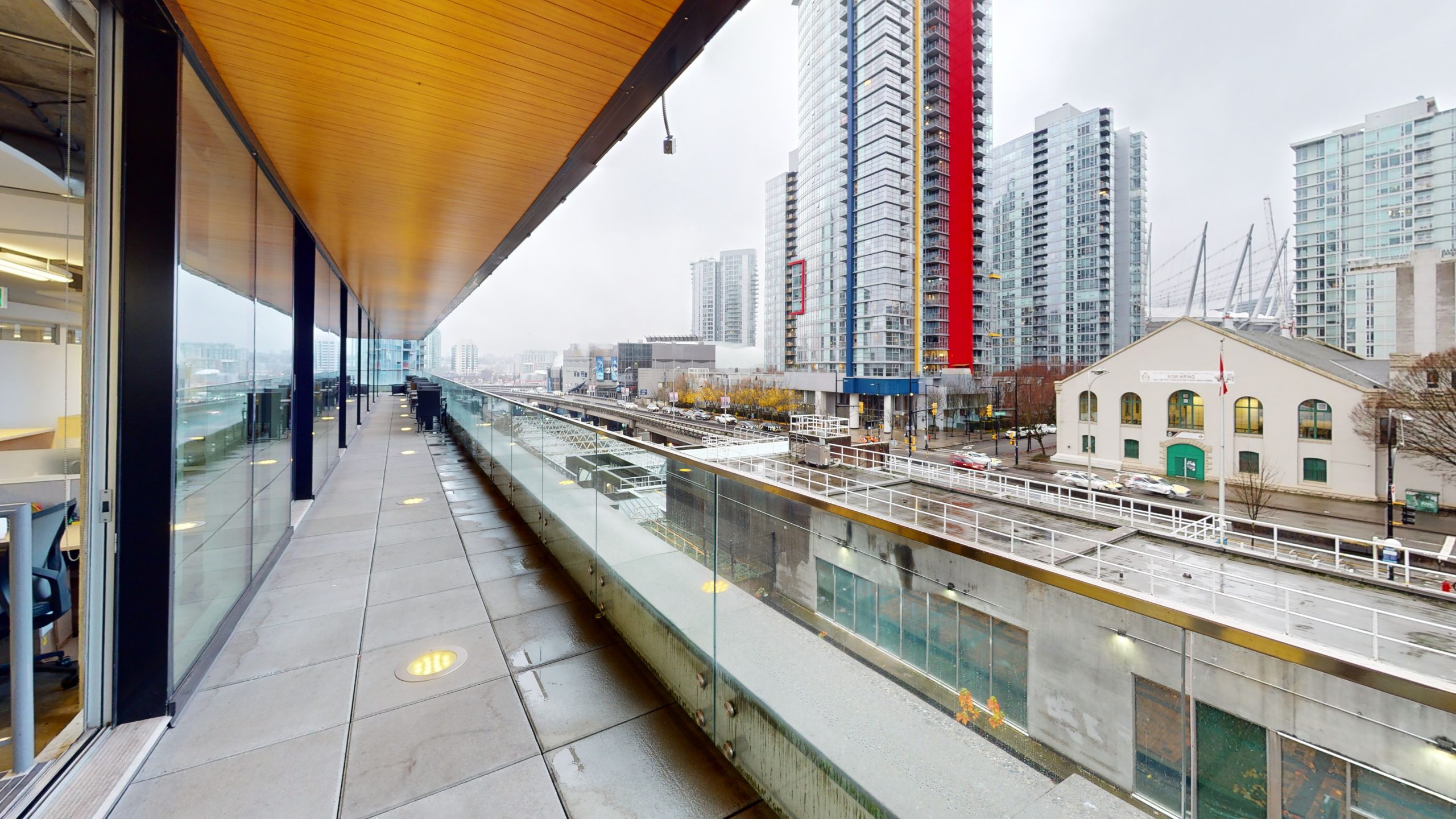 The workspace includes multiple boardrooms and private offices, a conference/training room, staff kitchen and coffee bar, and gender-neutral private washrooms with end-of-trip shower facilities. The highlight of the space is a private wrap-around terrace offering unobstructed downtown views, perfect for team gatherings or executive events.