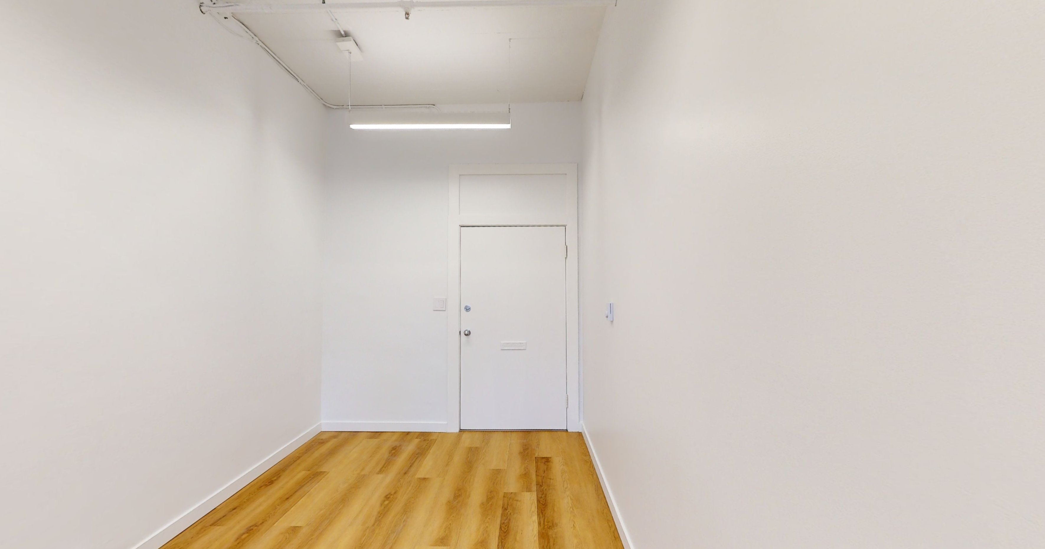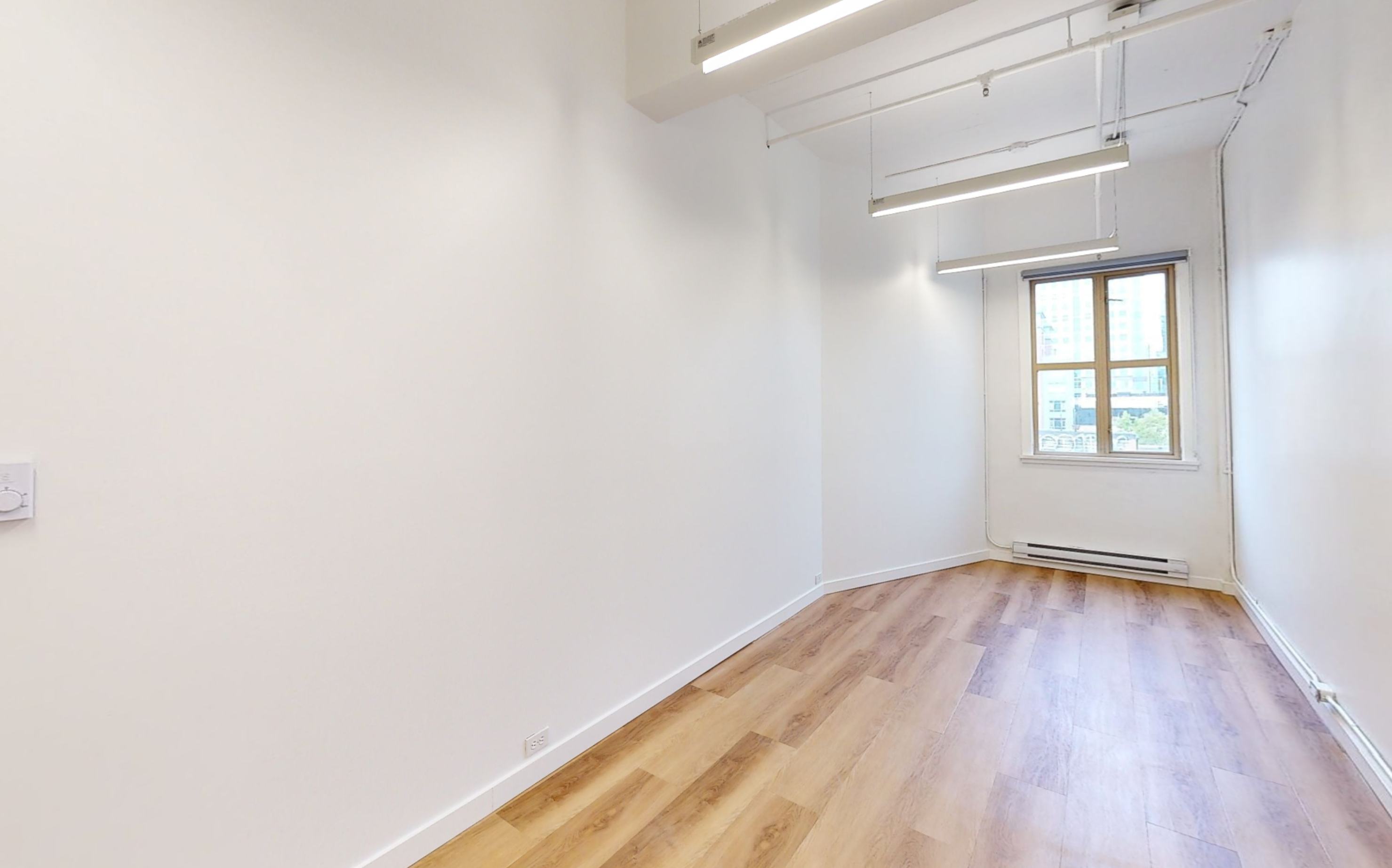 Bright, efficient 7th-floor office with exposed ceilings, great natural light, and a dedicated waiting area right at the entry.