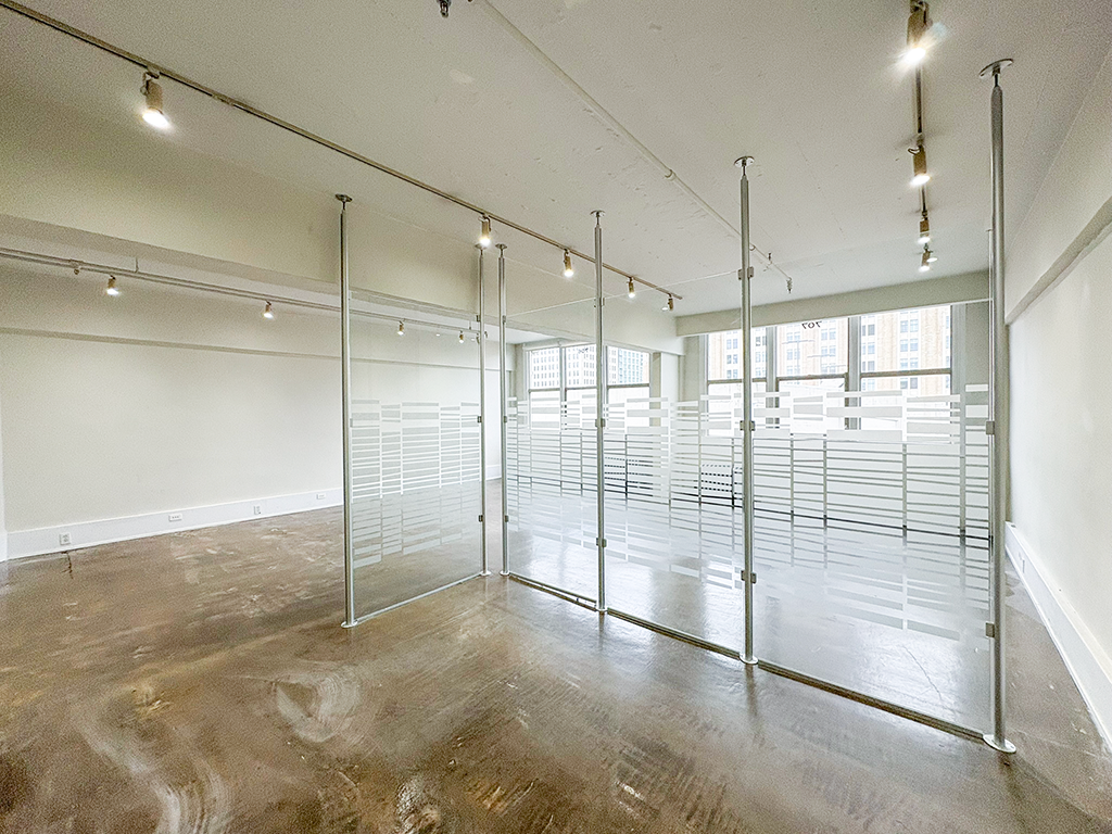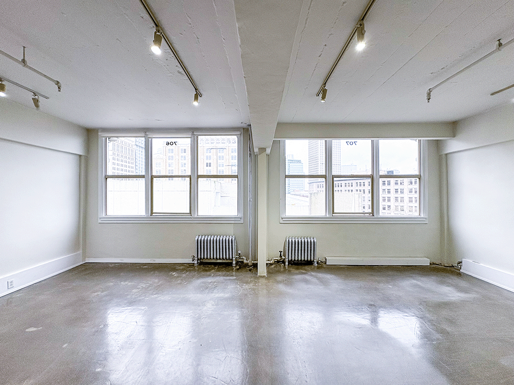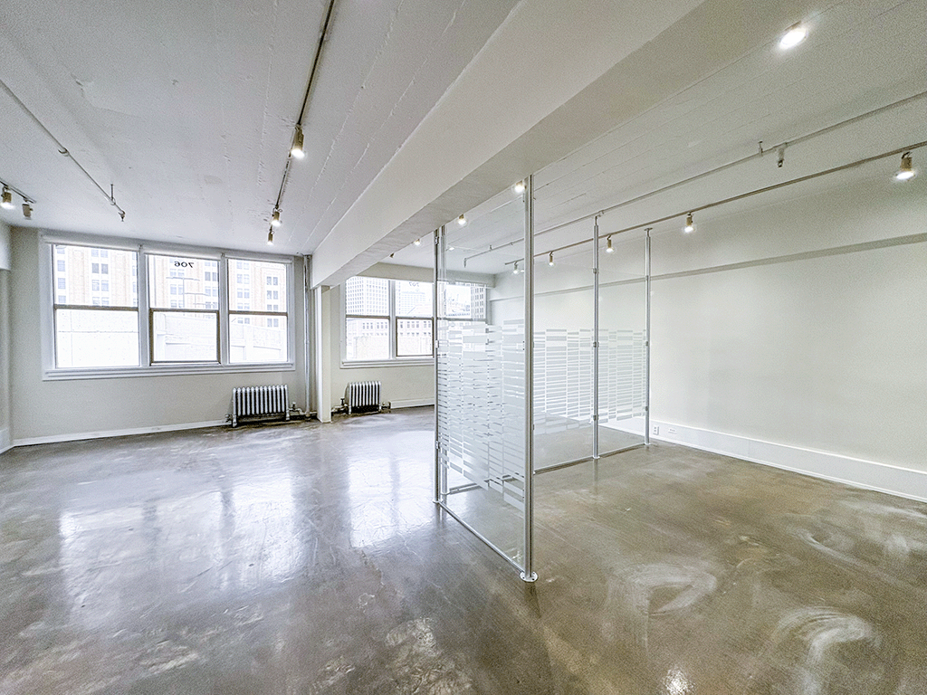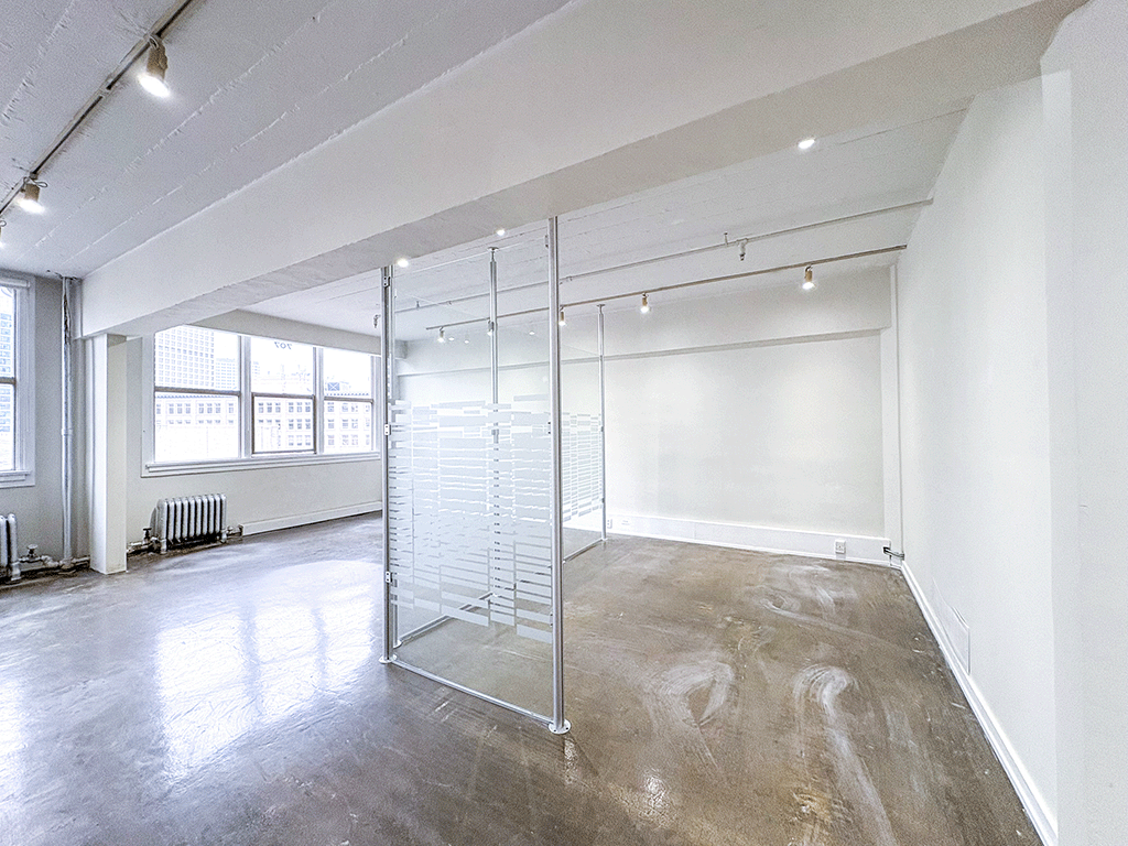 Bright, efficient 7th-floor office with exposed ceilings, great natural light, and a dedicated waiting area right at the entry.