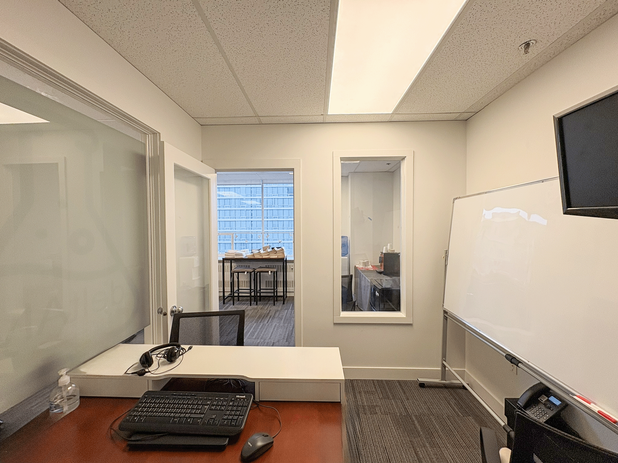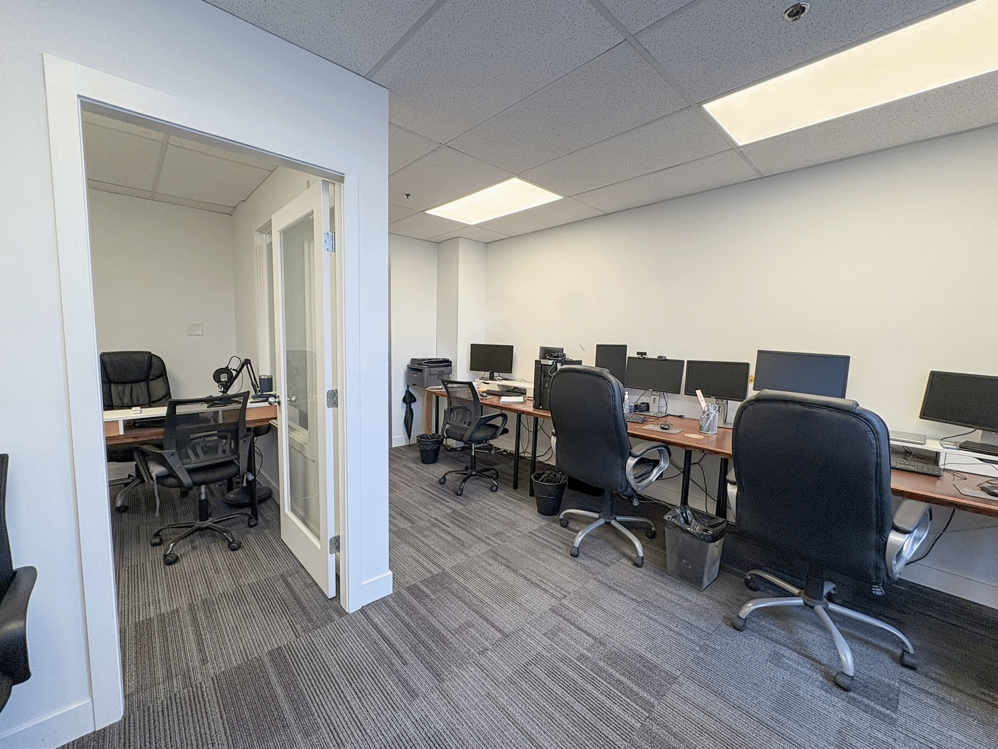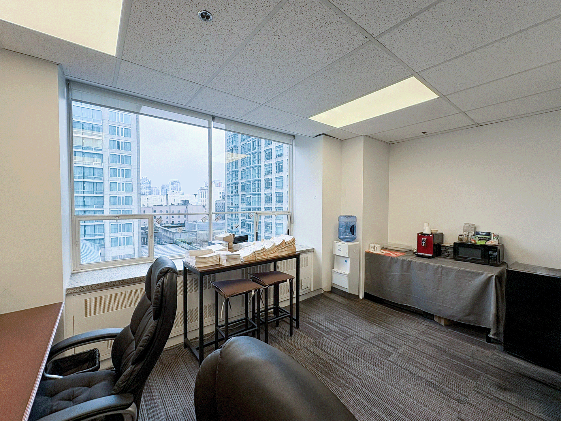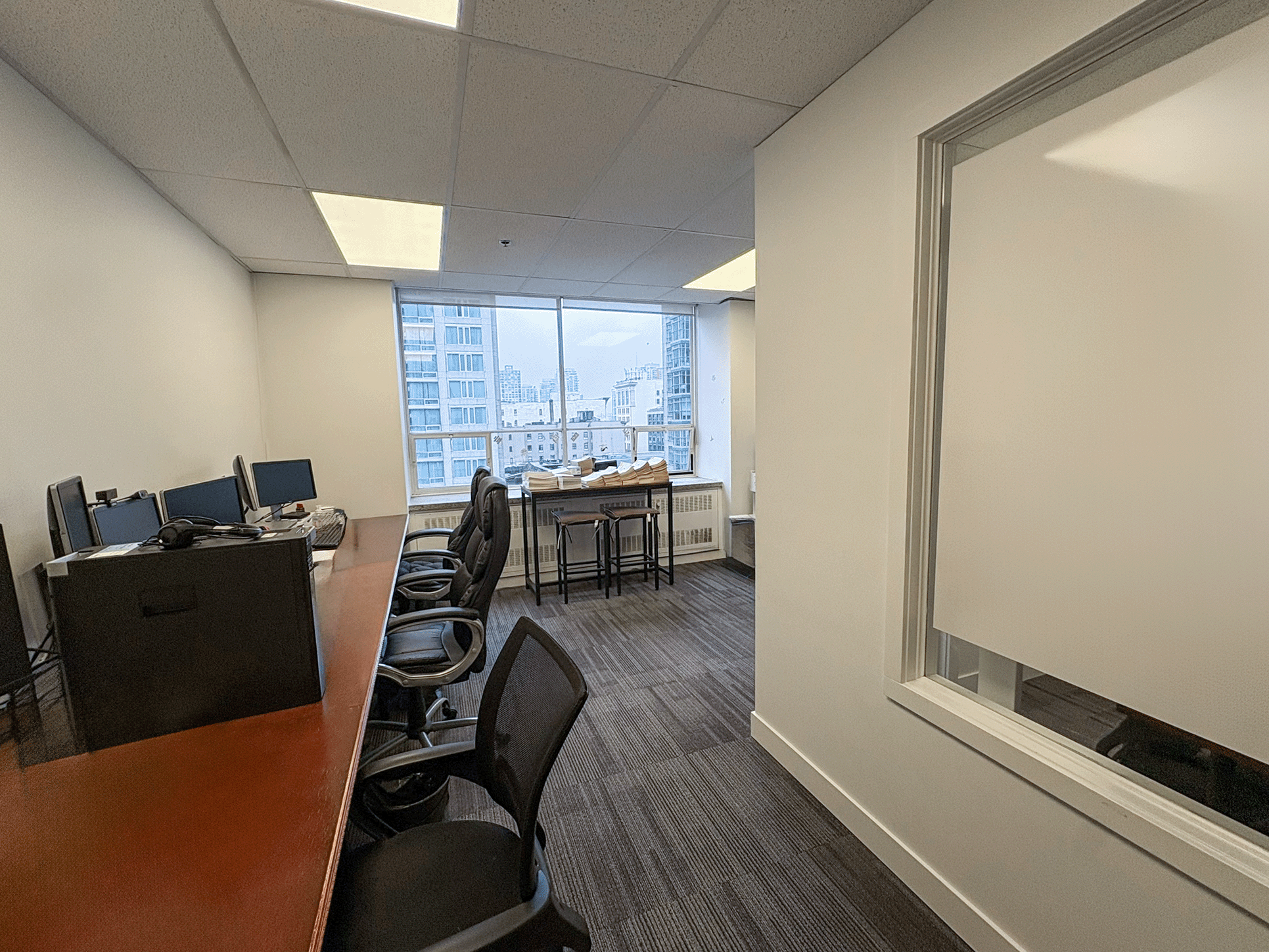 Bright upper-floor office suite featuring a functional open layout with a private internal office/meeting room. The space offers great natural light, efficient proportions, and a straightforward layout, ideal for small teams, consultants, creatives, or anyone seeking a clean, simple workspace in a well-located downtown building.