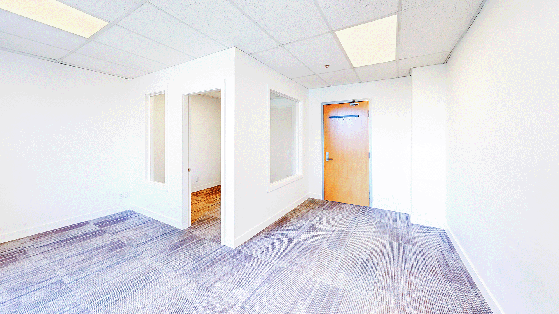 Bright upper-floor office suite featuring a functional open layout with a private internal office/meeting room.